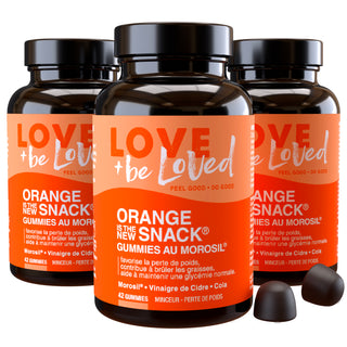 Envie de perdre quelques kilos et de retrouver la ligne ? Découvrez les tout nouveaux gummies "Orange is the new Snack®" à base de Morosil®, de Vinaigre de Cidre, de Poudre de Noix de Cola et de Chrome.
